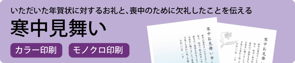 その年に身内の方が亡くなられた場合、喪に服し、年賀状を出すのを控えることになります。しかし、年賀状を一方的に控えるのは、先様に対して失礼にあたりますので、きちんとした形でお知らせする事が大切です。