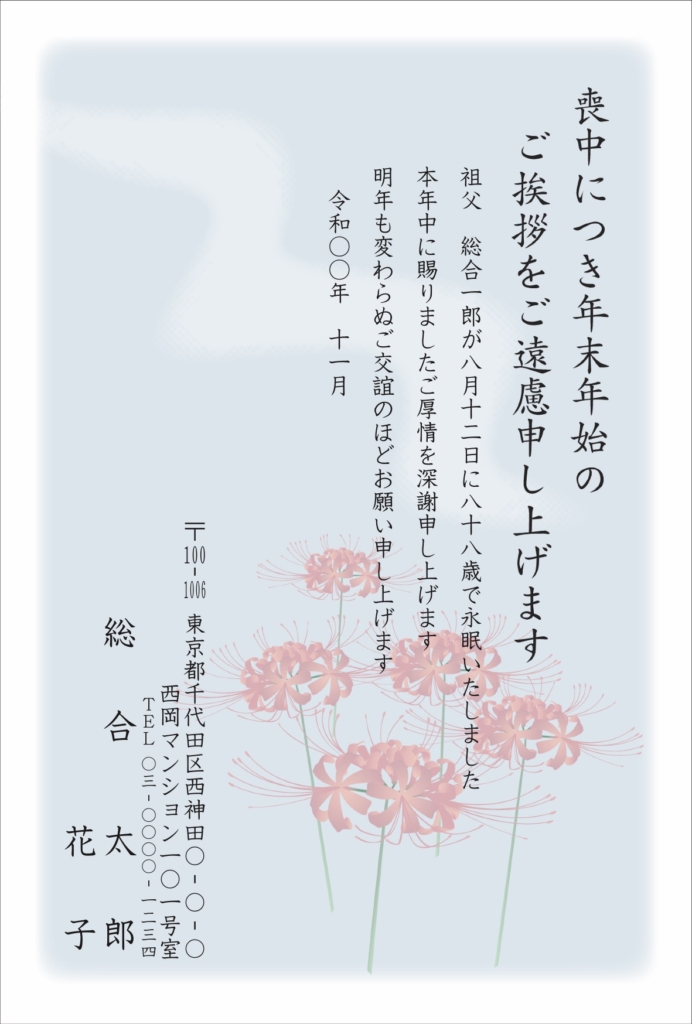 喪中はがき(スタンダードデザイン:M8107)彼岸花